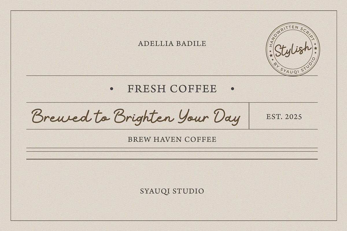 Adellia Badile – Script Font is a beautifully crafted handwritten script. The font designed to bring elegance and sophistication to your creative projects. With its smooth, flowing curves and natural charm, this font is perfect for adding a personal touch to your designs. Whether you’re working on fashion and apparel branding, beauty and cosmetics marketing, wedding invitations, luxury perfume packaging, or jewelry designs, Adellia Badile will make your text stand out with a refined and classy look.