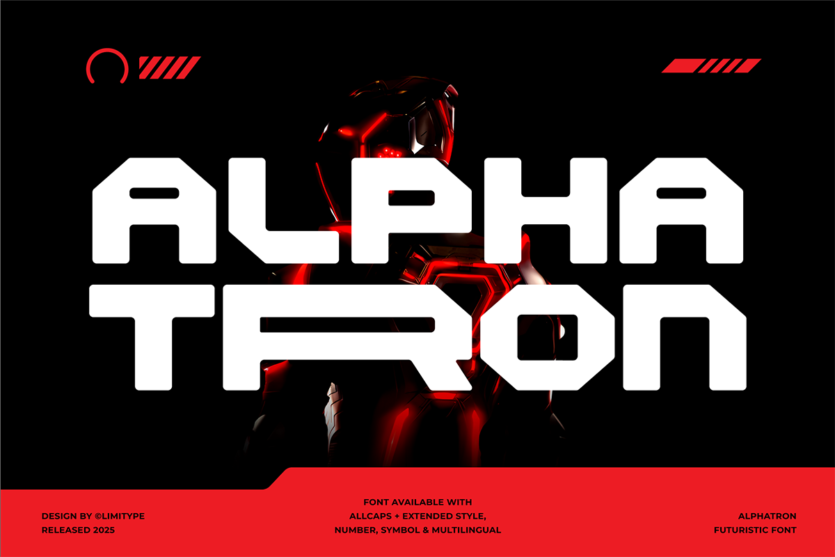 Alphatron – Futuristic Font is a display font with a bold and futuristic style. Perfect for standout headline designs, poster, branding, and future themed digital projects, It also comes with adjustable stretch variations.
