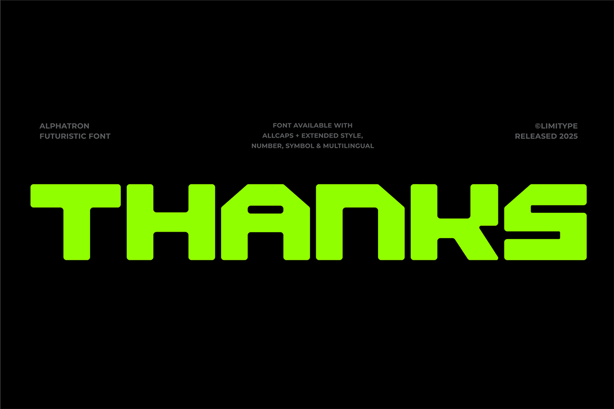 Thanks to Limitype for sharing with us this exquisite font! However, Alphatron – Futuristic Font demo is only available for personal use. So, if you want to access more its full features and license, go get the premium version as well!