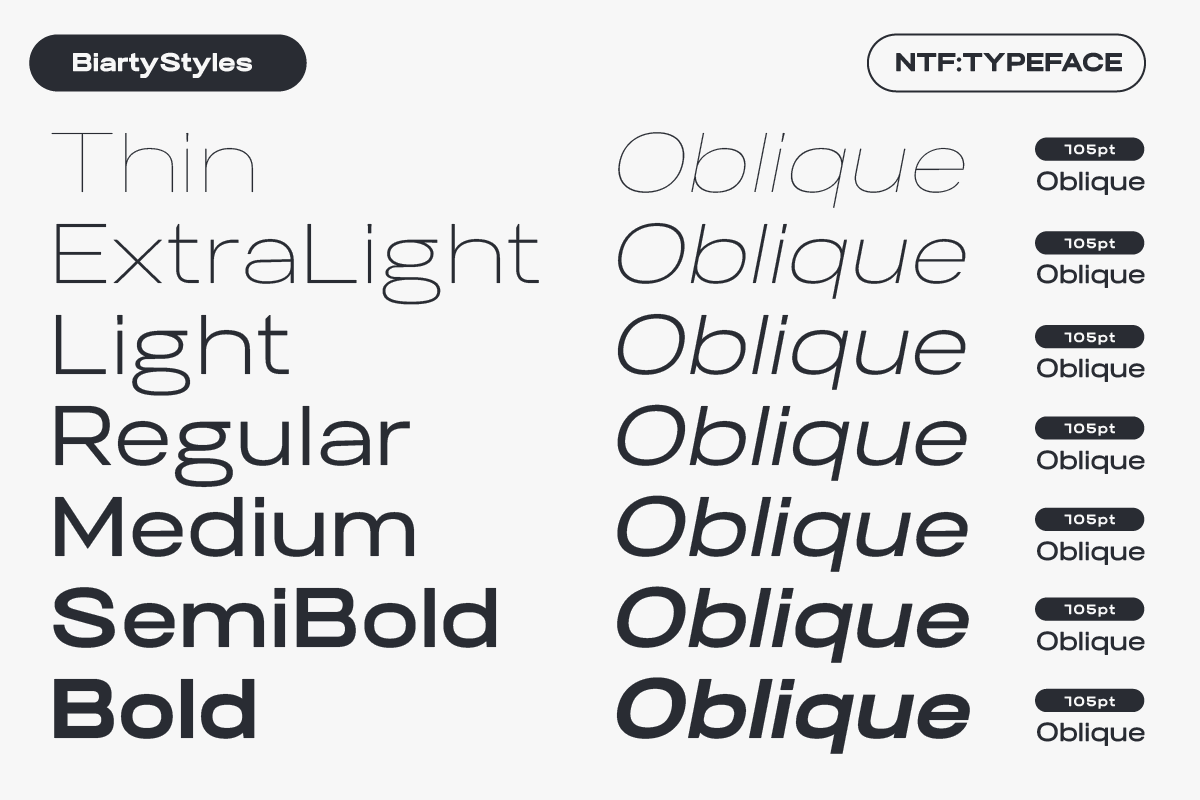 Biarty comes with 14 styles (from Extra Light to Extra Bold, including Obliques). It also offers a Variable Font version, giving designers complete control over visual tone and flexibility. With over 745 glyphs and support for 290+ languages, Biarty fits perfectly for global and modern design needs.