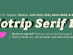 Biotrip Serif is composed of 14 fonts, distributed in 2 styles (Regular and Italic) and 7 weights: Light, Regular, Medium, Semi Bold, Bold, Extra Bold and Black.