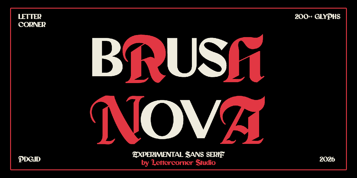Brushnova – Display Serif is an experimental typeface that blends classic serif elegance with a bold, contemporary attitude. Designed with strong contrast and expressive letterforms, BRUSH NOVA delivers a distinctive visual presence that feels both timeless and modern.