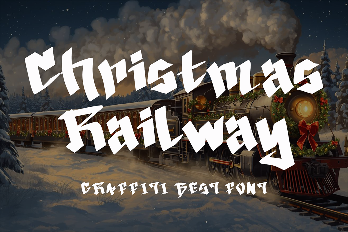 Christmas Railway Font is an elegant and modern graffiti font. It features uppercase and lowercase letters, numerals, punctuations, and multilingual support. It’s perfect for Christmas, winter, holidays, graffiti, street fonts, wall fonts, stickers, prints, banners, tattoos, logos, holidays, vacations, spring, YouTube, social media, Thanksgiving, and more.