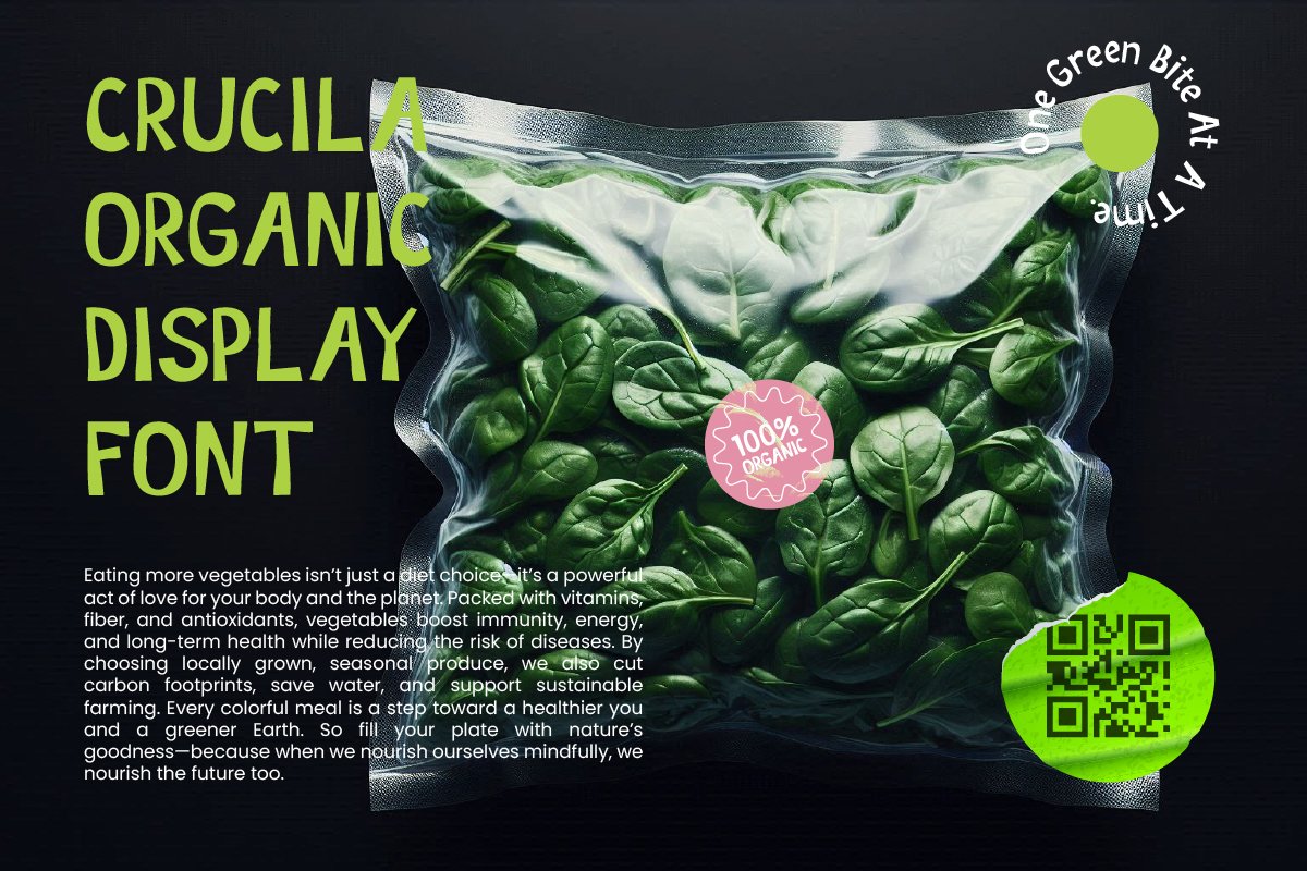 Whether for eco-branding, food and beverage packaging, gardening campaigns, organic product labels, posters, social media visuals, or children’s illustrations, Crucila shines in any creative work that celebrates nature. Add a flourish of greenery and freshness to your design world with Crucila—one organic letter at a time!