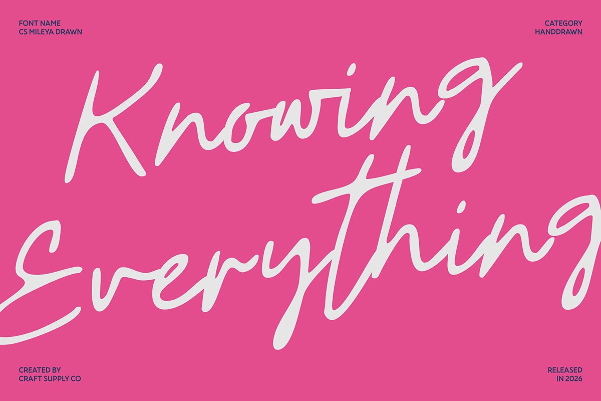 CS Mileya Drawn Script is a stylish font defined by its beautifully flowing strokes and elegant curves. Its modern rhythm brings every letter to life with smooth, luxurious movement, giving text a refined and effortlessly sophisticated presence. Perfect for romantic designs or high-end visuals, this font elevates your message with graceful charm.