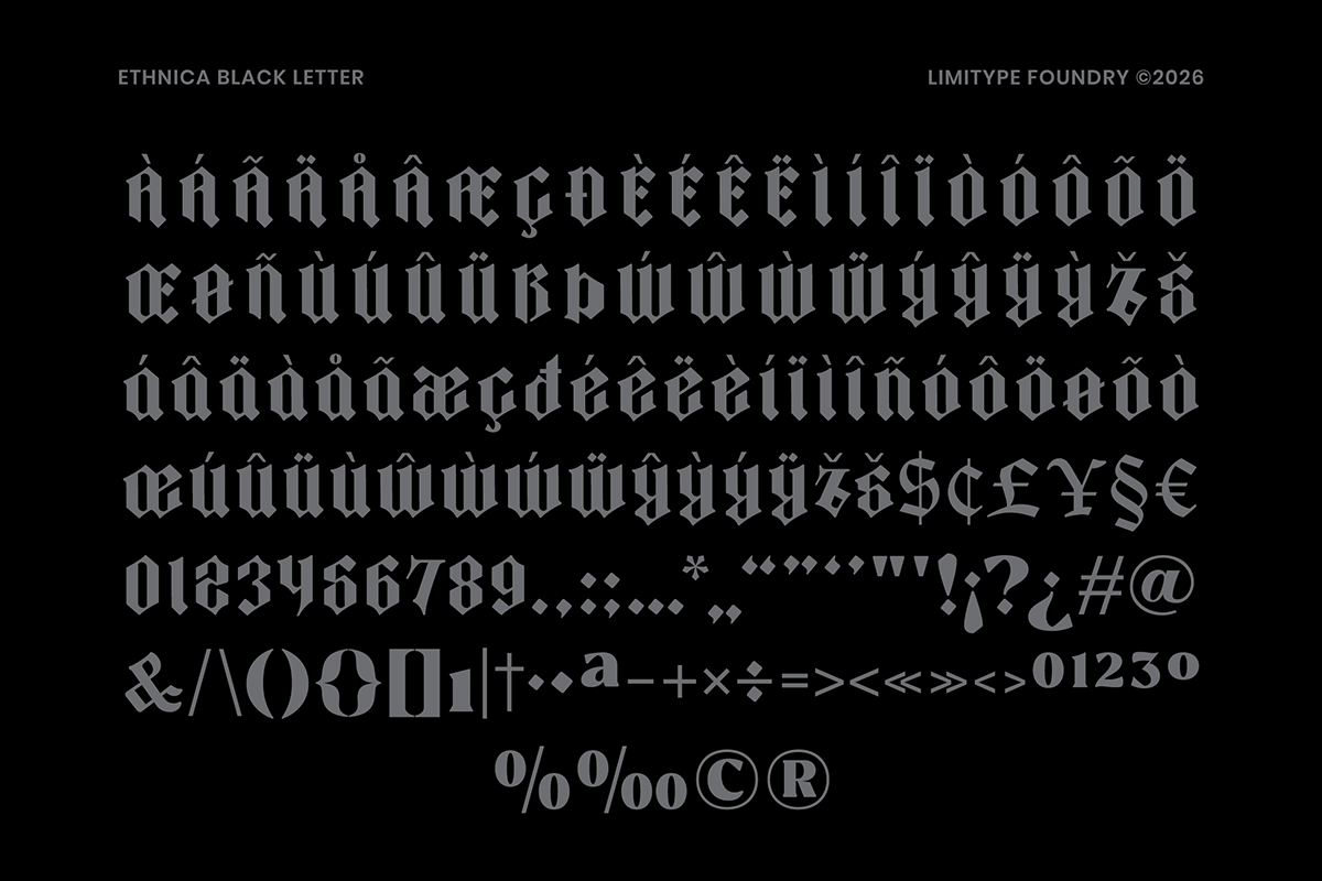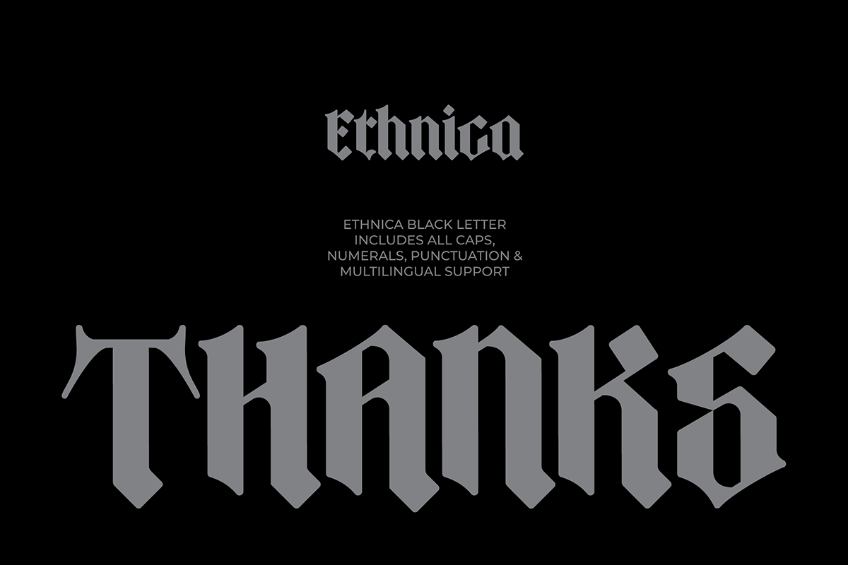 Thanks to Limitype for sharing with us this exquisite font! However, this Ethnica – Blackletter Font is only a demo version available for personal use. So, if you want to access more its full features and license, go get the premium version as well!