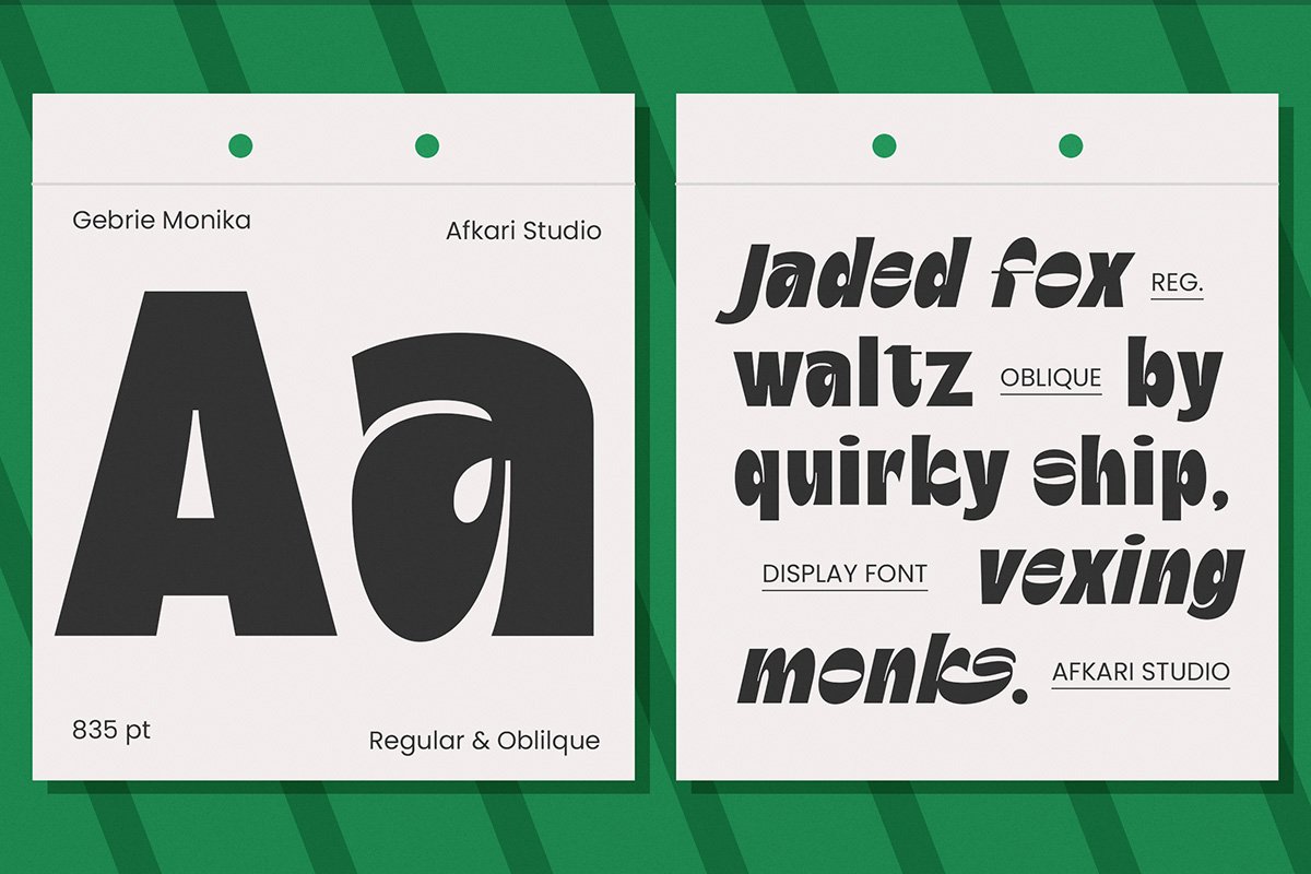 Thanks to Afkari Studio for sharing with us this exquisite font! However, this Gebrie Monika – Display Sans is only a demo version available for personal use. So, if you want to access more its full features and license, go get the premium version as well!