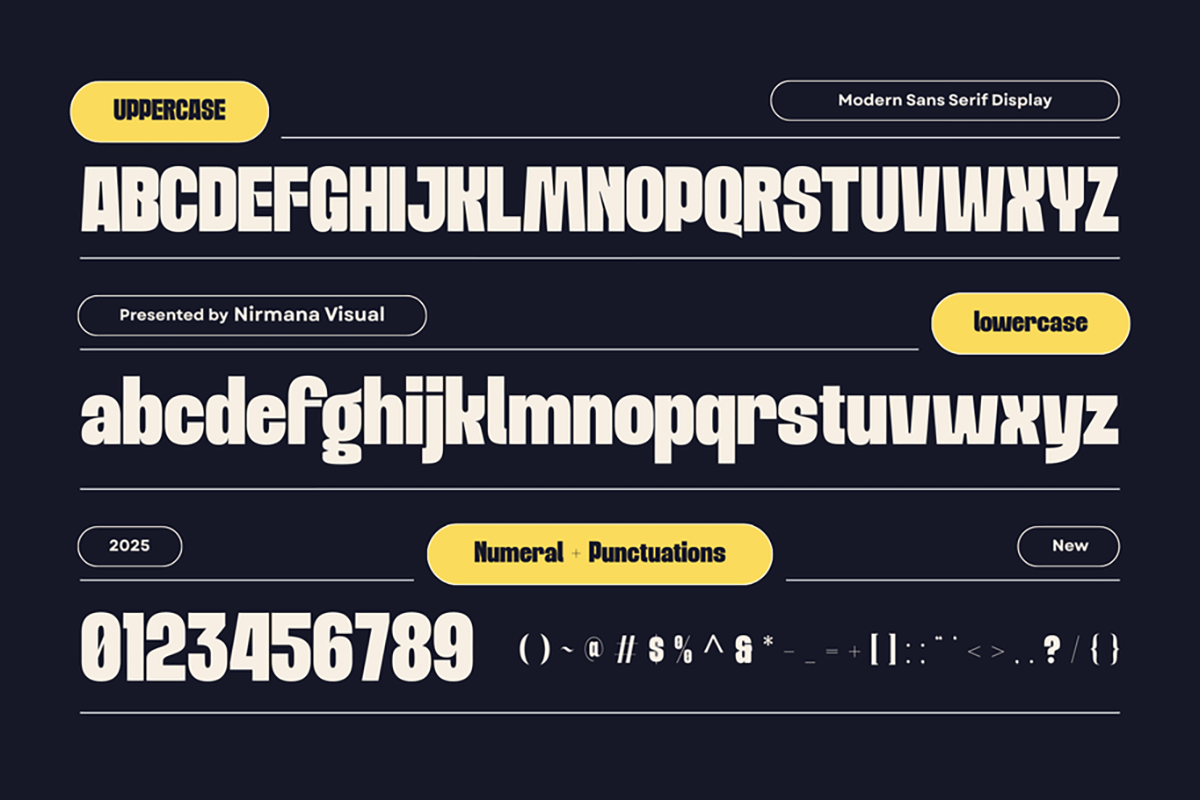 Goola Modern Font is a bold sans-serif font crafted for strong visual impact. Available in Regular and Extrude, it delivers a clean, modern style perfect for headings, titles, logos, labels, packaging, and versatile branding needs. Its powerful shapes and smooth geometry make every design stand out with confidence, clarity, and a contemporary aesthetic suitable for both digital and print use.