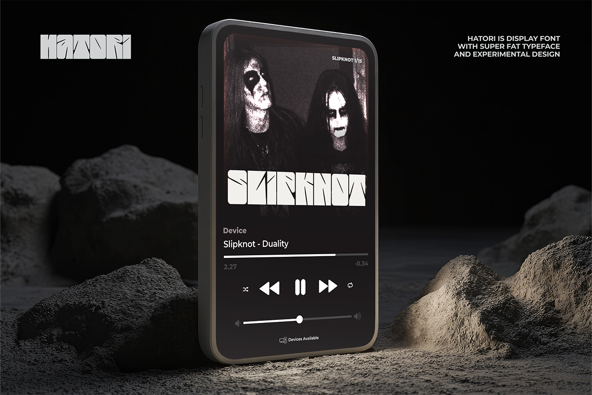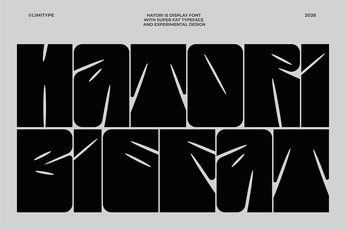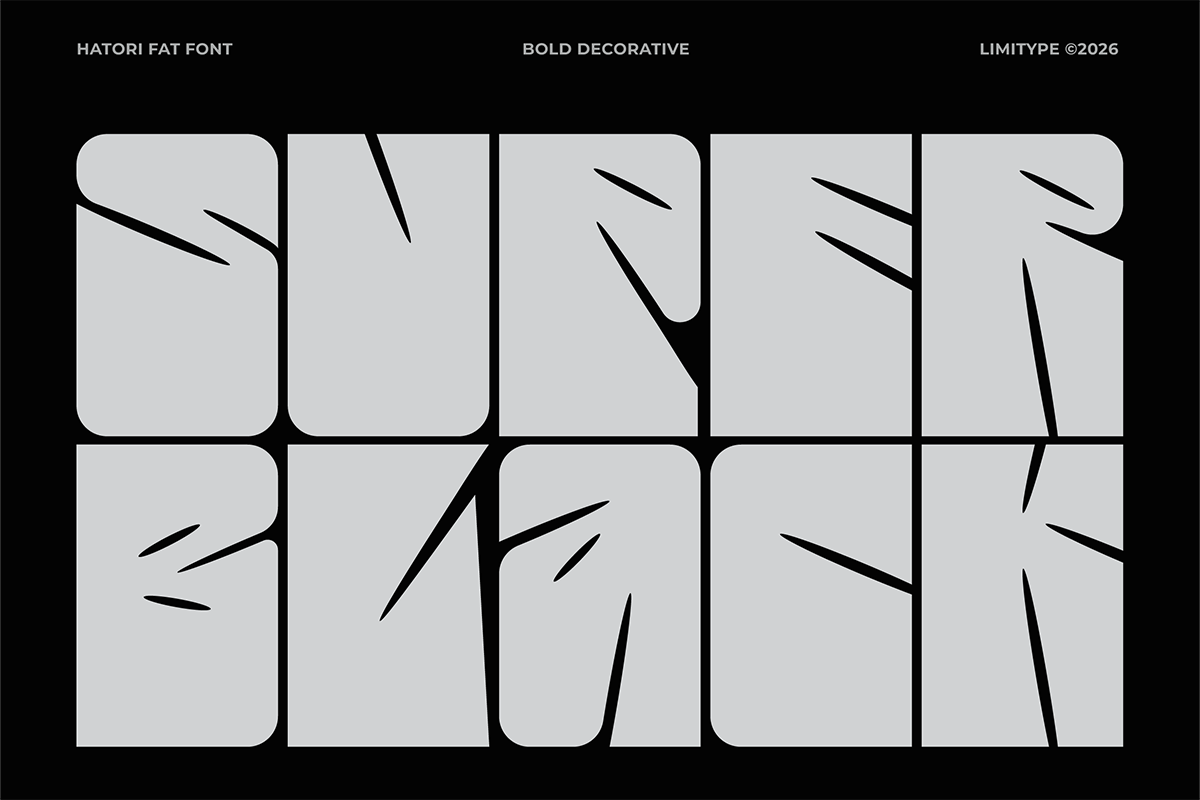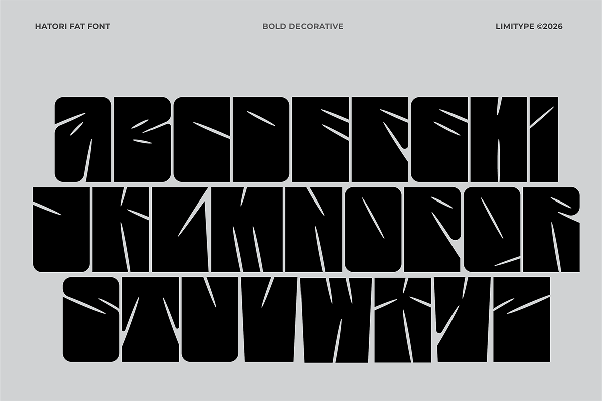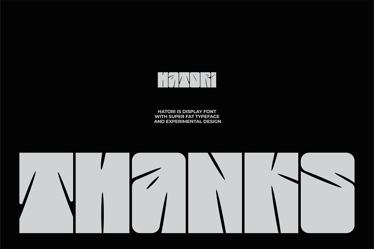 Hatori – Display Font is an extra-bold, condensed display font with sharp, aggressive, and modern character, designed to deliver strong visual impact. Suitable for headlines, logotypes, posters, merchandise, and branding that aims to stand out, this font ensures a bold, distinctive, and easily recognizable appearance across both print and digital media.