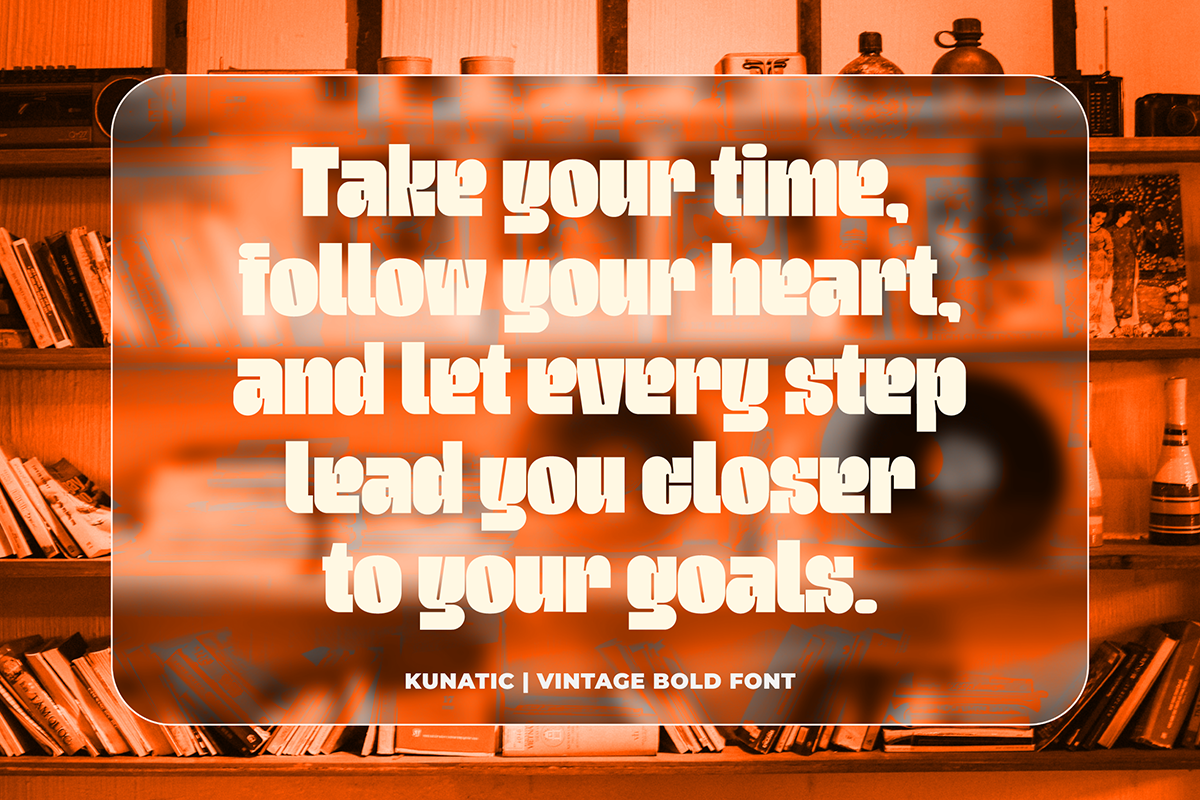 Kunatic – Retro Bold Font is a condensed old retro display font, it’s here to help you deliver a bold and unique visual presence. This typeface combines vintage inspired character with clean, structured letterforms, making it perfect for branding, logos, posters, packaging, and editorial design. Ideal for designers looking to create strong, distinctive, and professional visual identities across print and digital media.