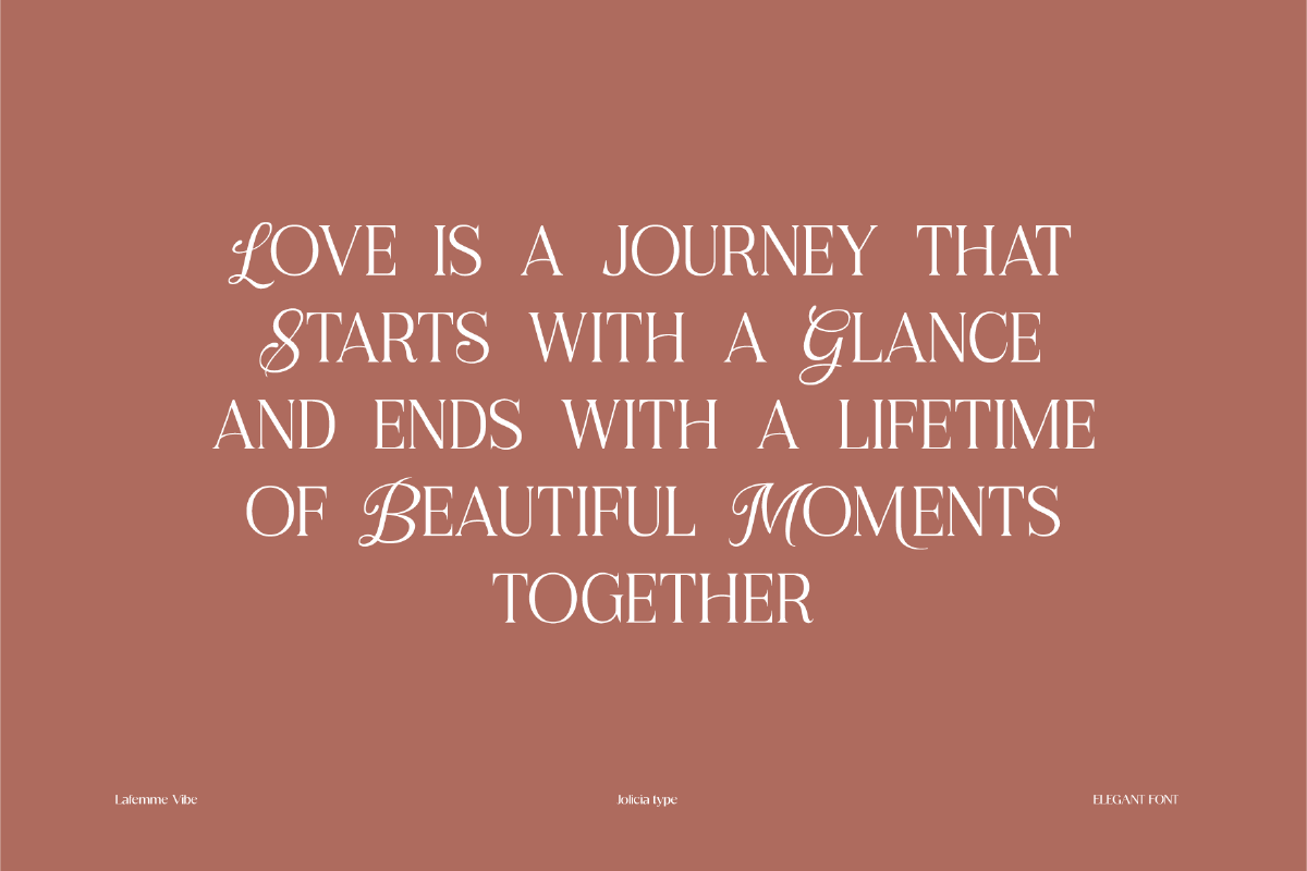Thanks to Jolicia Type for sharing with us this exquisite font! However, this LaFemme Vibe – Serif Font is only a demo version available for personal use. So, if you want to access more its full features and license, go get the premium version as well!