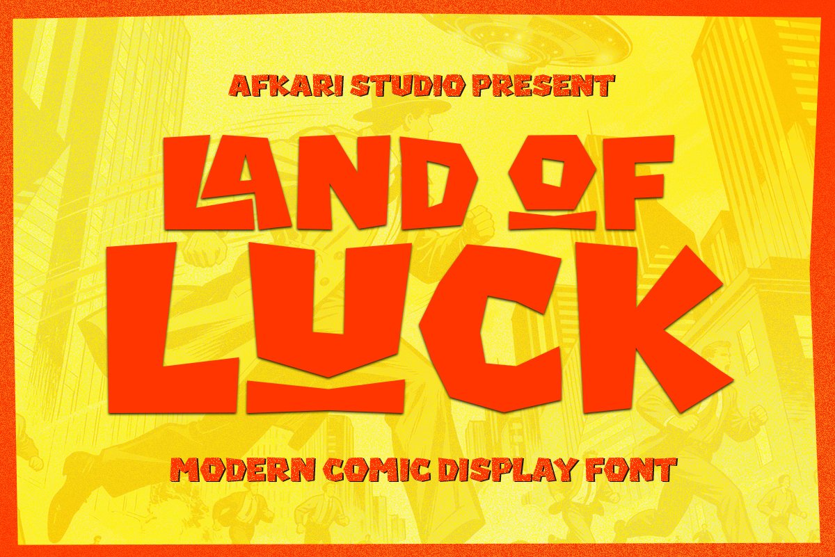Land of Luck – Display Font is a fun and energetic modern comic display font designed to bring joy, playfulness, and bold personality into your designs. With chunky shapes, smooth curves, and a friendly cartoon-inspired style, this font delivers a lively look that instantly grabs attention.