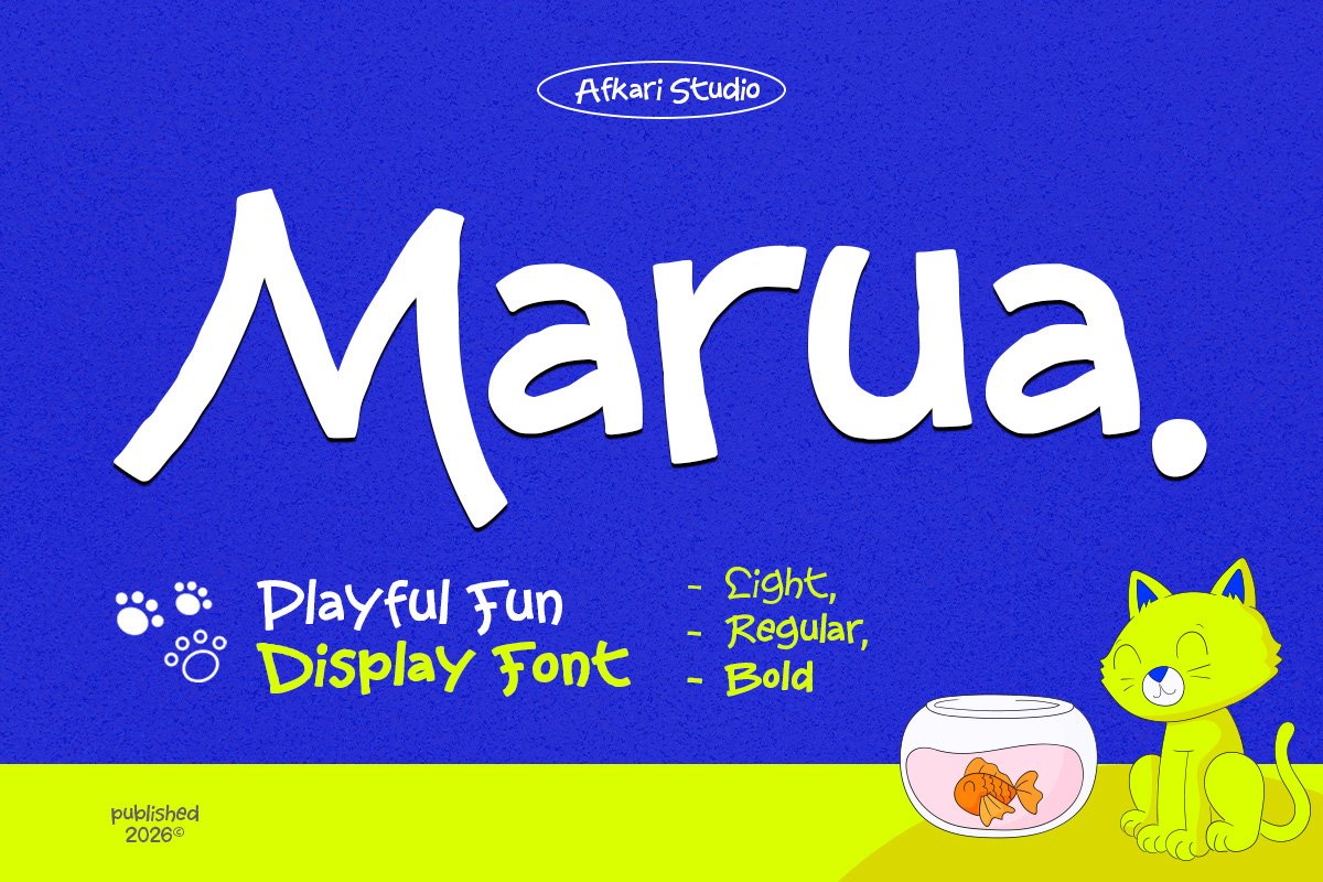 Thanks to Afkari Studio for sharing with us this exquisite font! However, this Marua – Playful Fun Display Font is only a demo version available for personal use. So, if you want to access more its full features and license, go get the premium version as well!