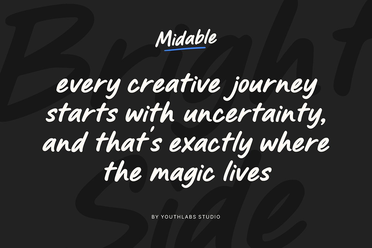 Thanks to Youthlabs Studio for sharing with us this exquisite font! However, this Midable – Bold Logo Marker Font is only a demo version available for personal use. So, if you want to access more its full features and license, go get the premium version as well!