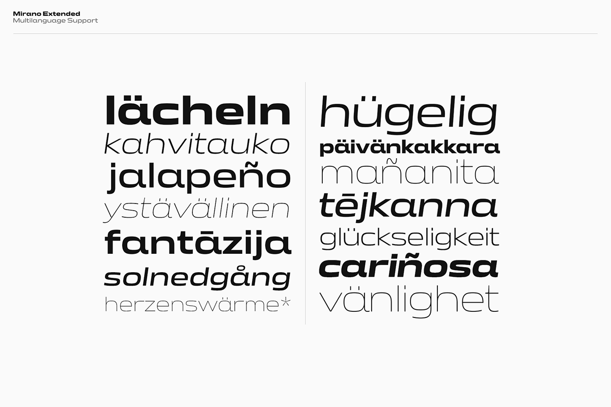Packed with professional OpenType features—ligatures, stylistic sets, case‑sensitive glyphs, and positional numerals—Mirano gives designers full control to tune form, rhythm, and fuel: from “0 to 100” acceleration in visual impact, when needed.