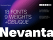 Nevanta – Sans Serif Font is a modern font with 18 styles (9 weights + Oblique), designed for professional, clean, and versatile typography. With precise geometric proportions and excellent readability, it is ideal for branding, websites, editorials, posters, and corporate identity. Multilingual support ensures flexibility, making it a complete typeface solution for both creative and professional projects.