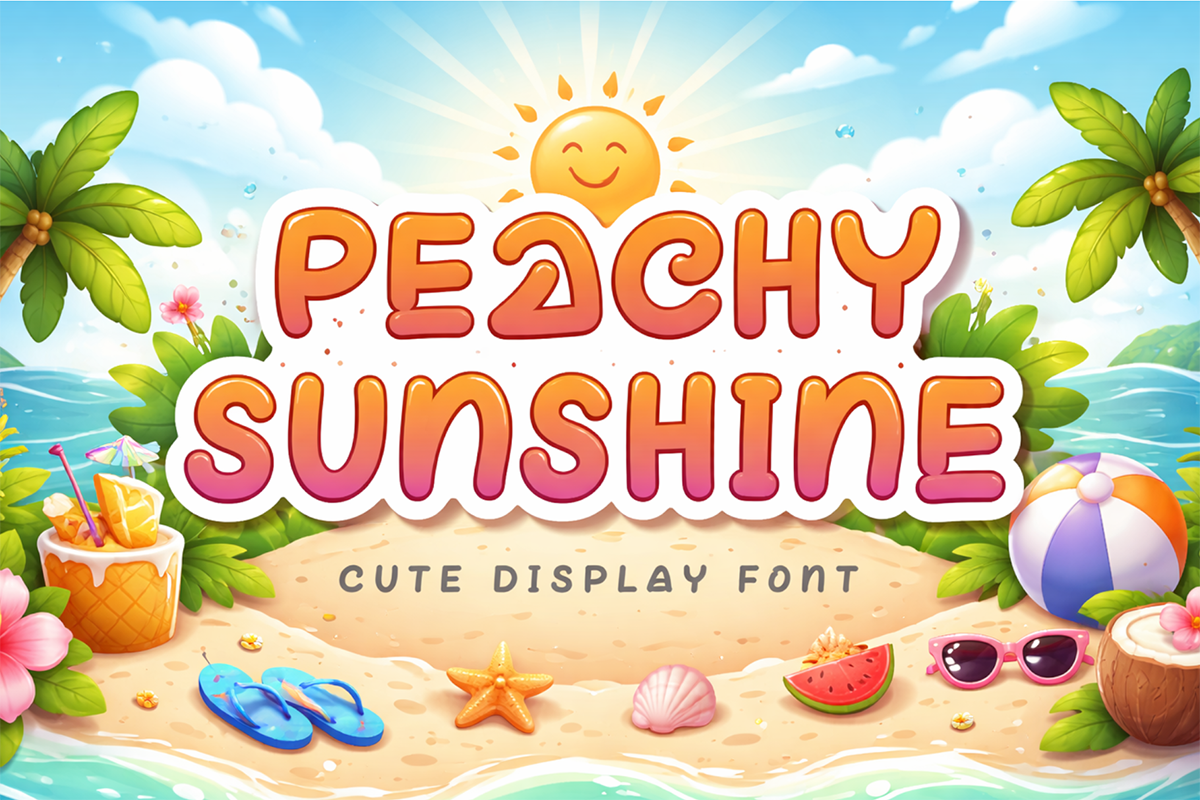 Peachy Sunshine Display Font is a unique and cute display font. It features uppercase and lowercase letters, numerals, punctuations, and multilingual support. It’s perfect for Easter, summer, holidays, Teacher’s Day, Mother’s Day, print, banners, branding, stickers, vacations, logos, Christmas, funny text, bunny, rabbit, cartoons, comics, and more.