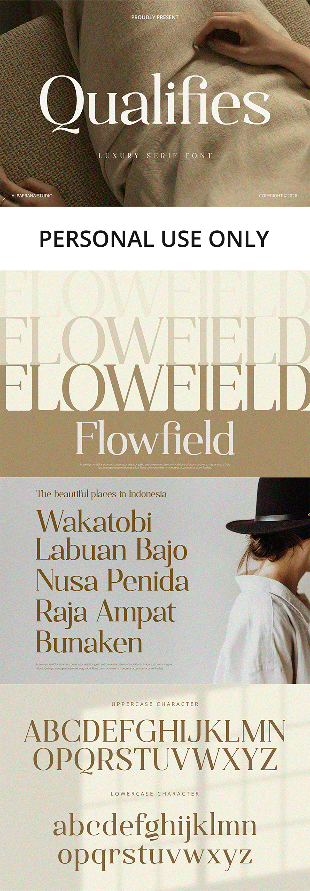 Thanks to Alpaprana Studio for sharing with us this exquisite font! However, this Qualifies – Serif Font is only a demo version available for personal use. So, if you want to access more its full features and license, go get the premium version as well!