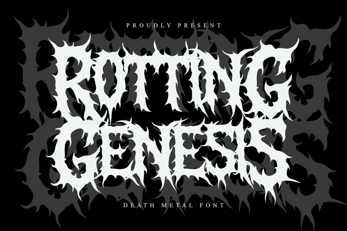 Rotting Genesis – Display Font is a brutal death metal font designed to bring the raw, chaotic energy of underground metal culture to your high-octane creative projects.