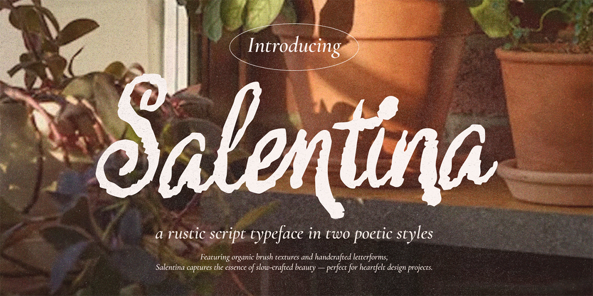 Salentina Italic Font is a rustic script font with a warm, handcrafted feel. It comes in two styles — Regular and Slanted — perfect for adding a poetic, natural touch to your designs. Inspired by slow living and organic textures, it is great for logos, packaging, quotes, journals, and branding. Each letter feels like it was written with care.