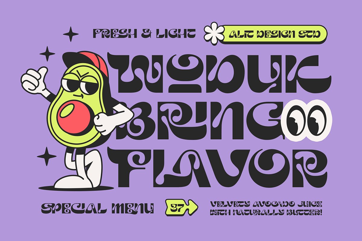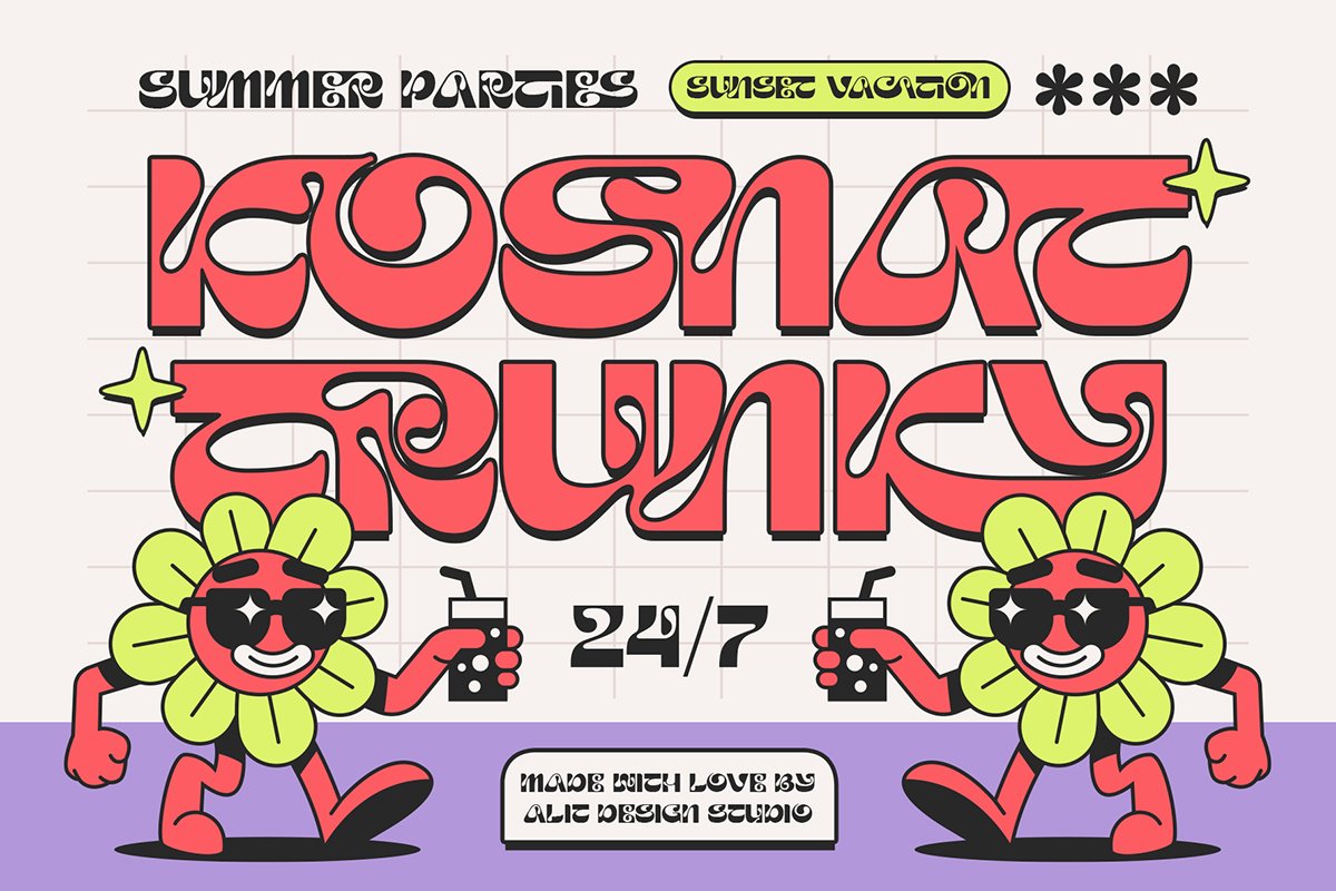 Designed by Alit Design Studio, Soiglat isn’t just a font; it’s a design toolkit. With its bubbly curves, deep ink traps, and “melting” aesthetic, it screams fun, freedom, and creativity. Whether you are designing a streetwear brand, a trippy music festival poster, or eye-catching packaging for a coffee shop, Soiglat brings that authentic vintage character that stops the scroll.