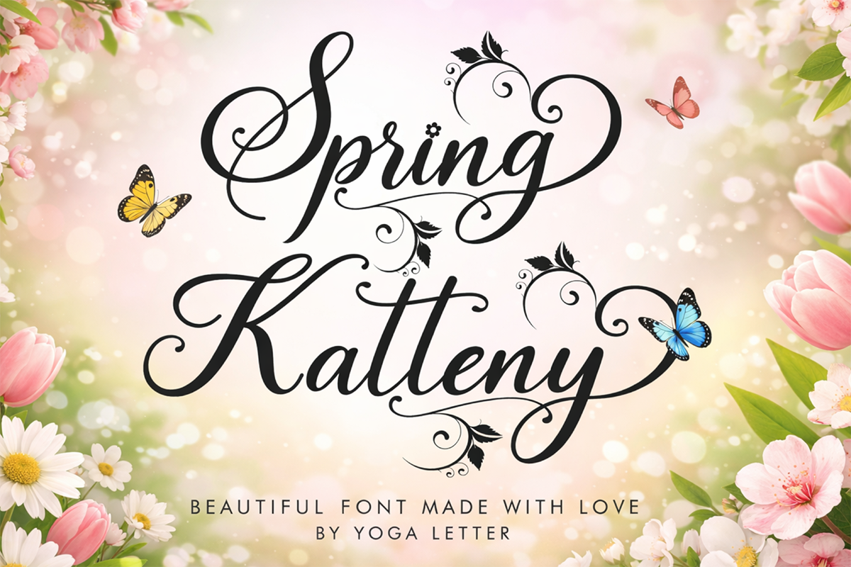 Thanks to Yoga Letter for sharing with us this exquisite font! However, this Spring Katteny – Script Font is only a demo version available for personal use. So, if you want to access more its full features and license, go get the premium version as well!