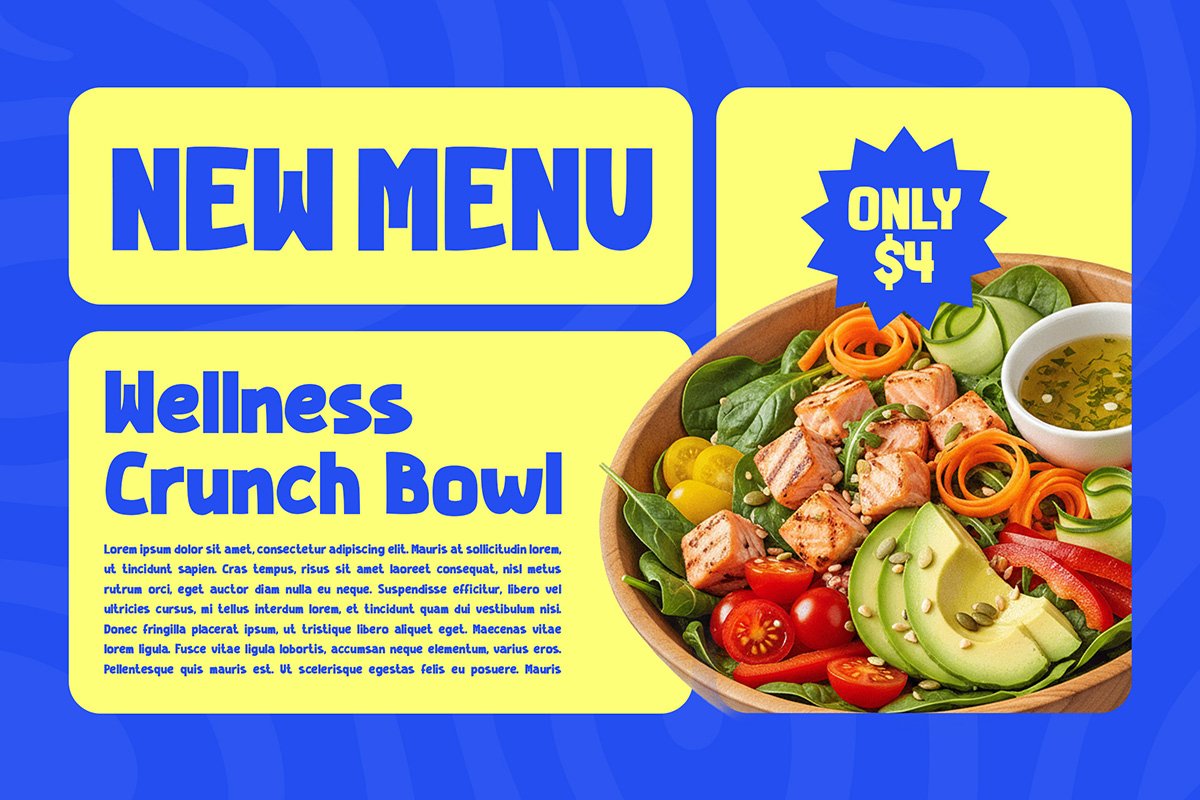 Tuneo Munch – Bold Font is a fun, chunky, and energetic bold display font designed to bring personality and impact to your creative projects. Its playful geometric forms and strong visual weight make it perfect for kid-themed designs, comics, branding, packaging, posters, social media graphics, and any layout that needs a cheerful, attention-grabbing headline. With soft edges and lively character shapes, Tuneo Munch delivers a friendly and modern vibe—great for both digital and print use. Whether you’re designing for fun, food, family, or entertainment, this font brings bold joy to every project.