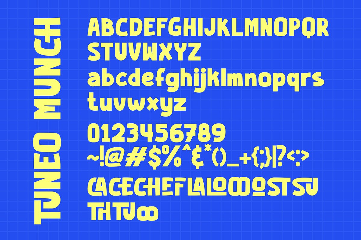 Thanks to Youthlabs Studio for sharing with us this exquisite font! However, this Tuneo Munch – Bold Font is only a demo version available for personal use. So, if you want to access more its full features and license, go get the premium version as well!