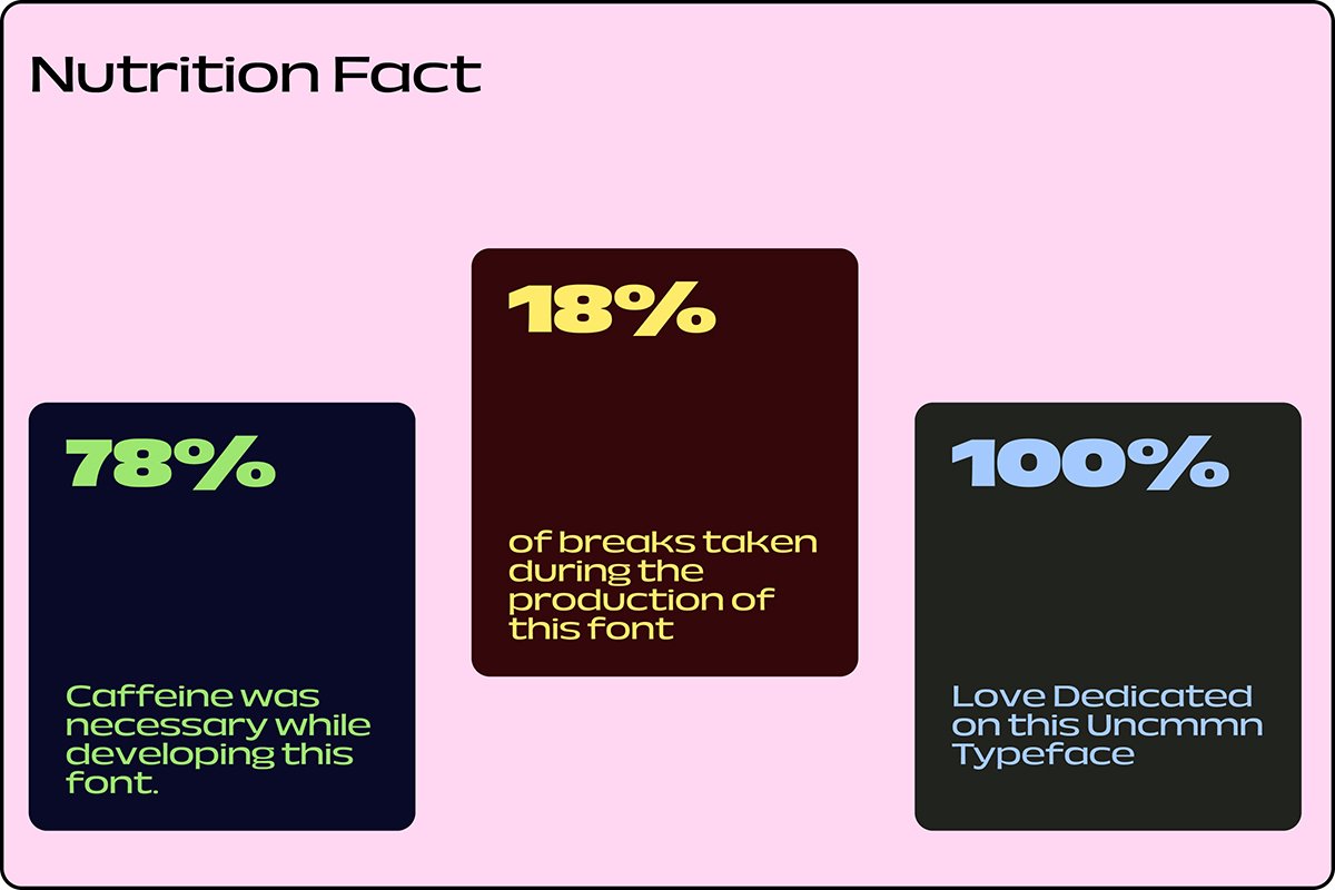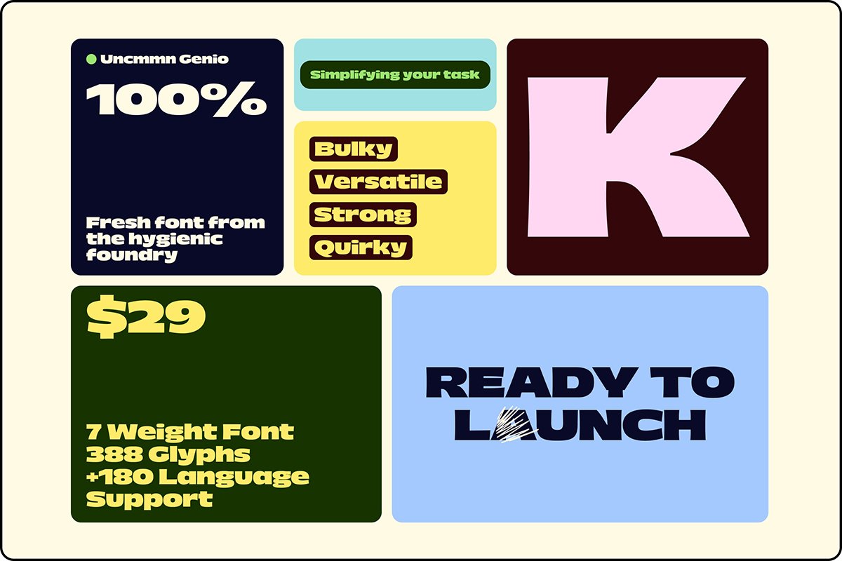 Uncmmn Genio – Sans Serif is a geometric sans-serif typeface that blends clarity with a modern sense of sophistication. Its design emphasizes precise construction with even stroke widths, clean terminals, and subtle curves that prevent the letterforms from feeling too mechanical. This balance makes it highly legible at both small and large sizes, allowing it to perform equally well in body text and in display applications. The overall impression is sleek and contemporary, yet approachable—an aesthetic that works seamlessly across branding, editorial layouts, and digital interfaces.