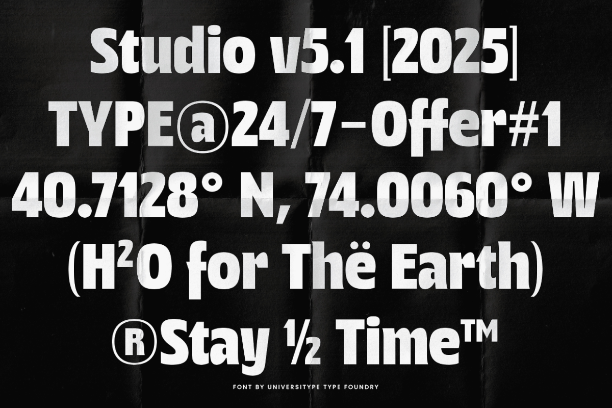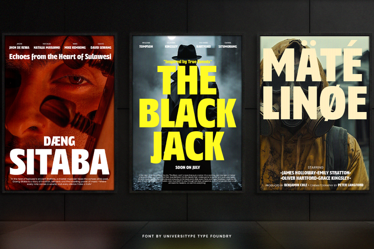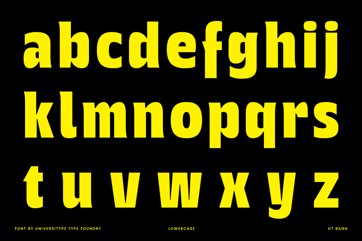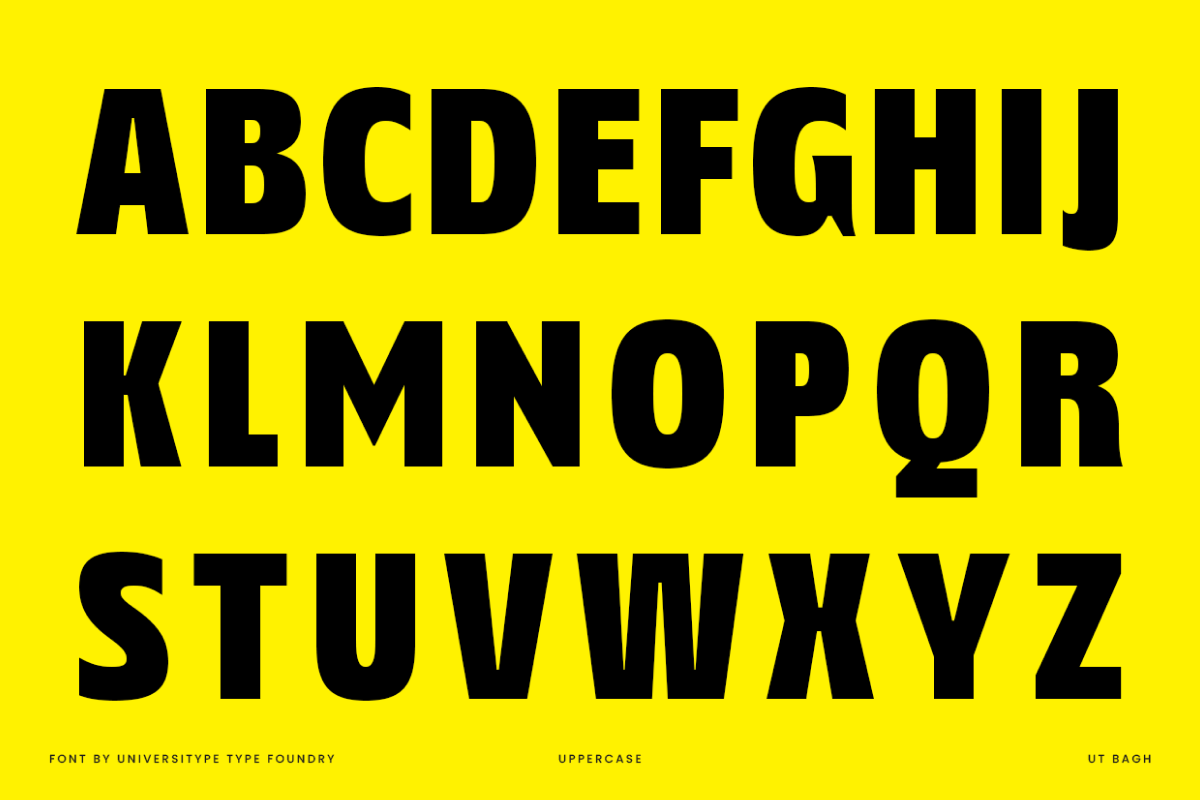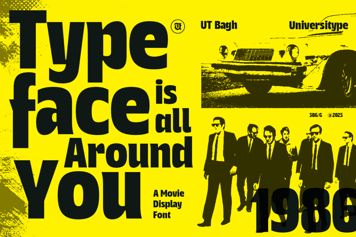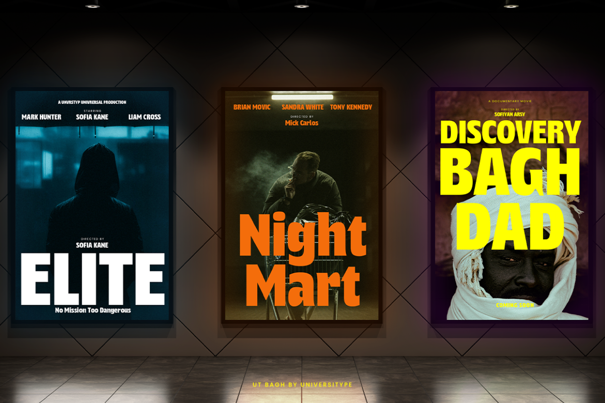 UT Bagh Display – Movie Font is a neo-grotesk sans-serif built with the big screen in mind. It’s clean, modern, and confident—crafted to be just as striking on a four-story movie poster as it is in the rolling end credits of your favorite film. With its wide apertures, generous counters, and steady rhythm, UT Bagh brings clarity and character to any project. Think of it as your typographic IMAX lens: bold, versatile, and always in focus.