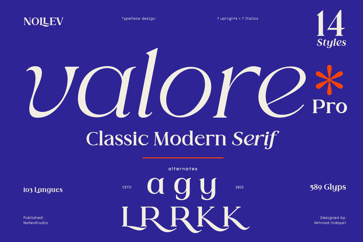 Thanks to Nollev Studio for sharing with us this exquisite font! However, this Valore Pro – Modern Serif Font is only a demo version available for personal use. So, if you want to access more its full features and license, go get the premium version as well!
