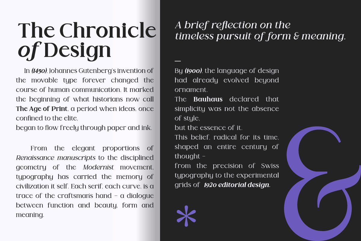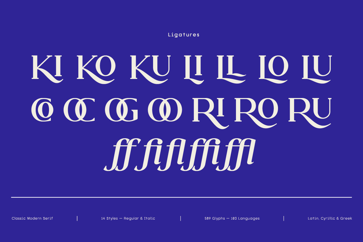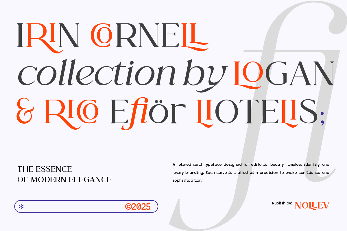 This typeface blends classical proportions with a contemporary touch — perfect for magazines, luxury packaging, book covers, or stylish web design. Each letter is designed with care to balance beauty and readability, giving your design a professional and elegant personality.