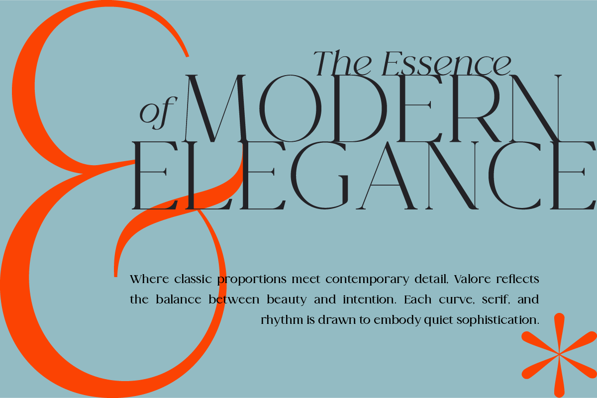 Valore Pro – Modern Serif Font is a classic font designed to bring timeless elegance and modern precision into your projects. With smooth curves, high contrast strokes, and refined italics, Valore Pro is crafted for editorial layouts, branding, and sophisticated typography.