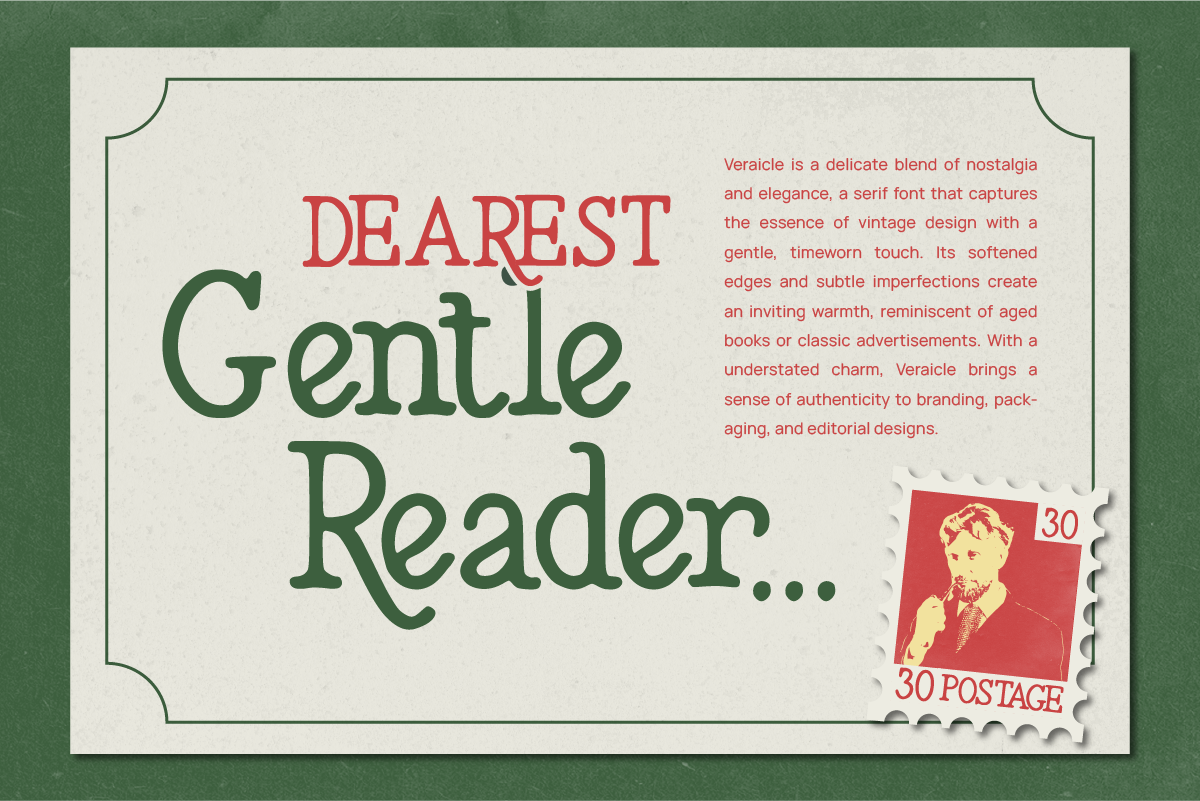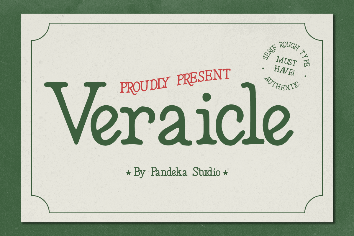 Veraicle – Display Font is a vintage rough serif with bold typography and a classic aesthetic, blending retro design with a timeless style. Its tall letterforms, high-contrast serifs, and textured lettering add authenticity and character to any project. Perfect for branding, packaging, editorial design, posters, signage, and nostalgic displays, it delivers a unique and handcrafted touch.