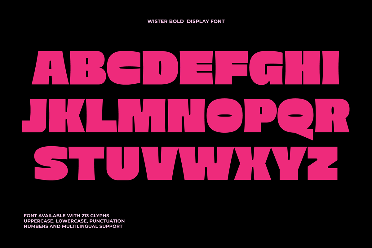 Wister – Bold Font is a groovy bold display font that bursts with energy and a unique retro flair. Its big, blocky shapes paired with smooth, dynamic curves give it a funky, playful, and expressive personality. With a mix of nostalgic charm and modern spirit, Wister is perfect for posters, titles, and any design that needs to stand out and grab attention.