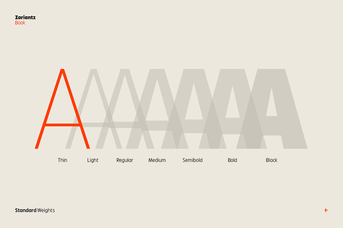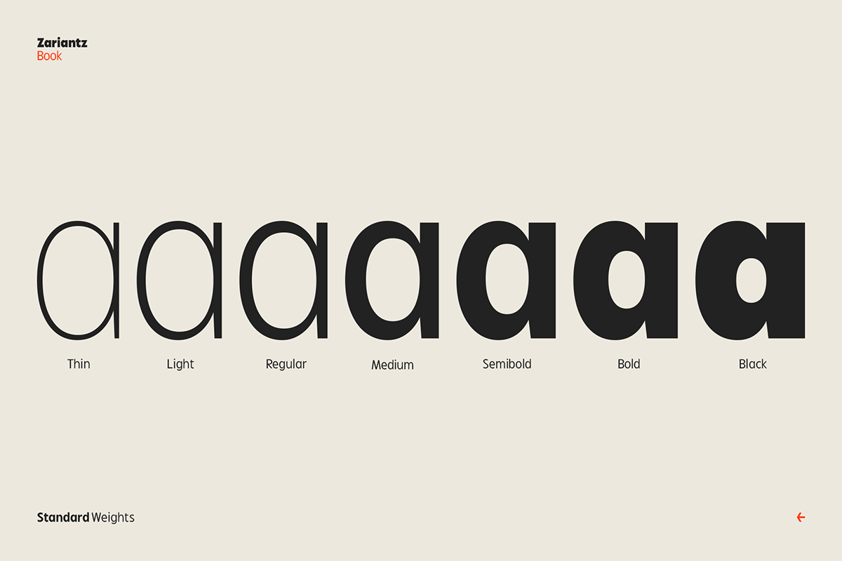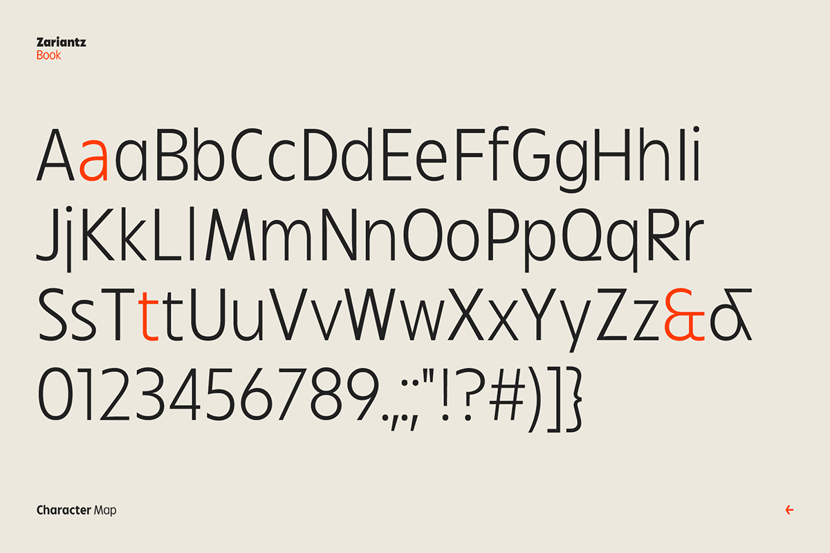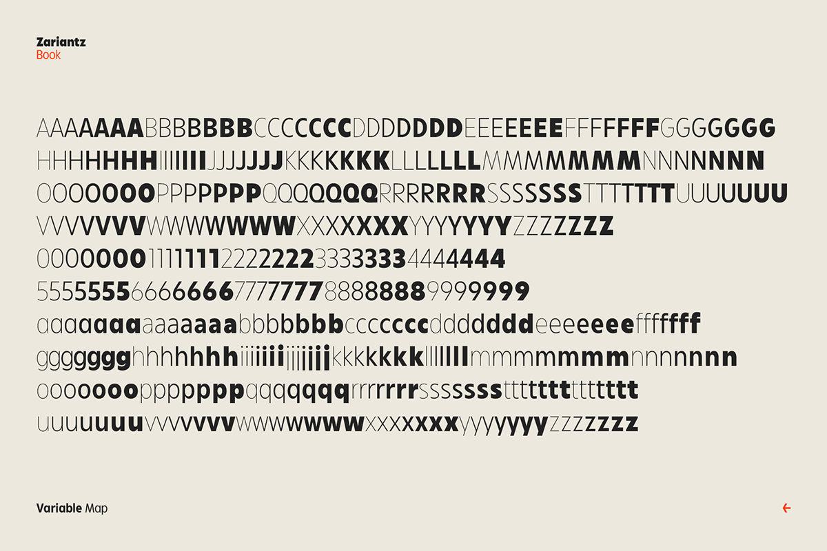 Zariantz Book – Sans Serif is a versatile sans serif variable typeface that offers clarity, precision, and expressive detail. Built around a balanced “book” weight, it delivers a clean and contemporary voice suited for both editorial and digital environments.