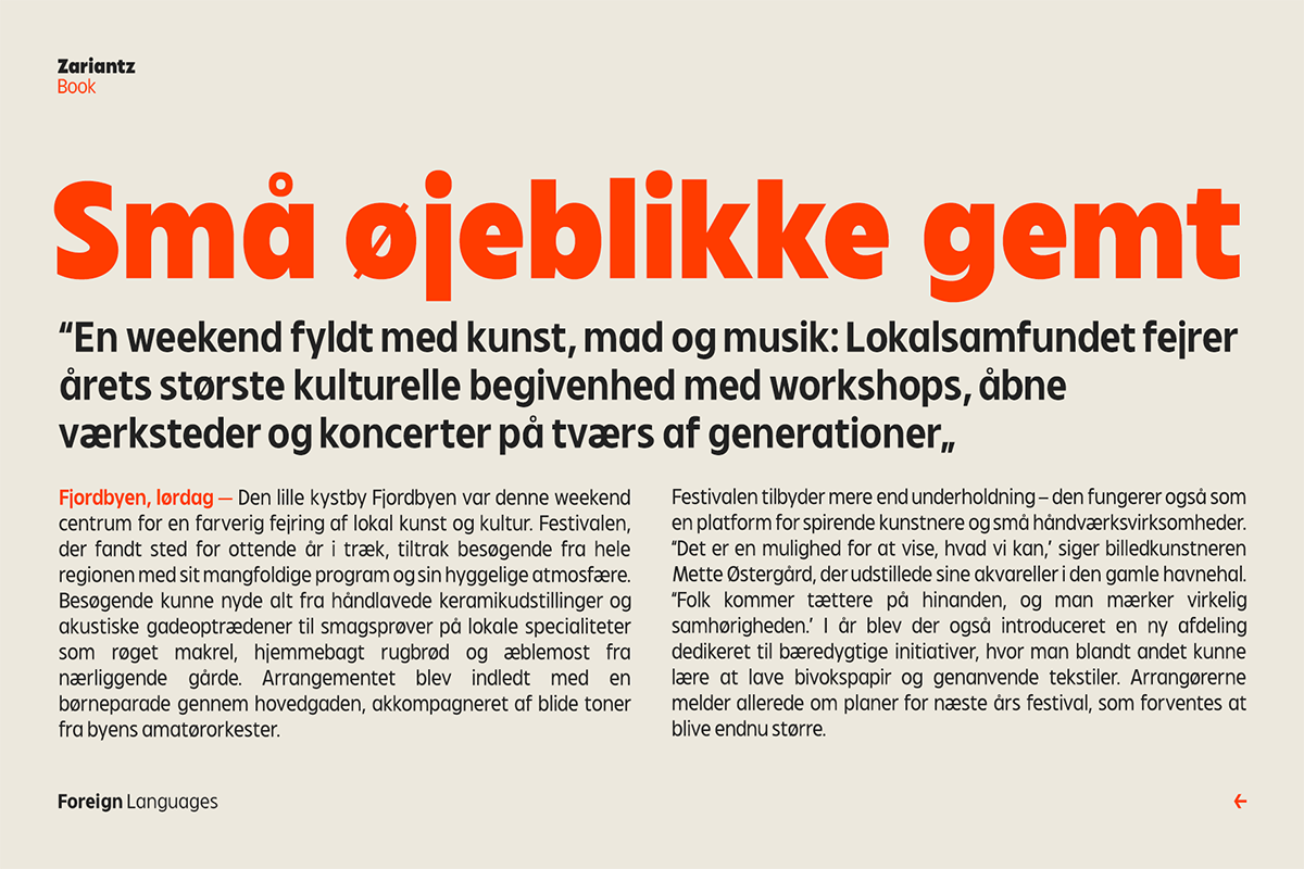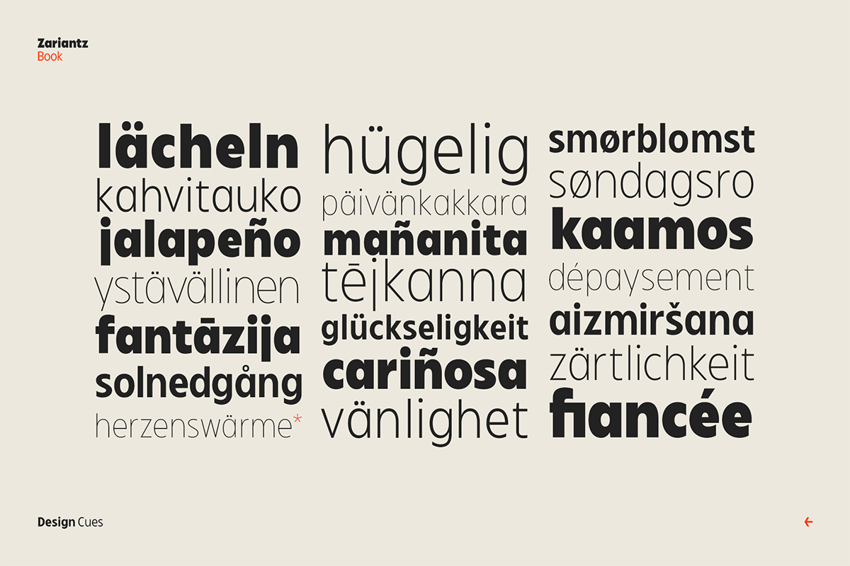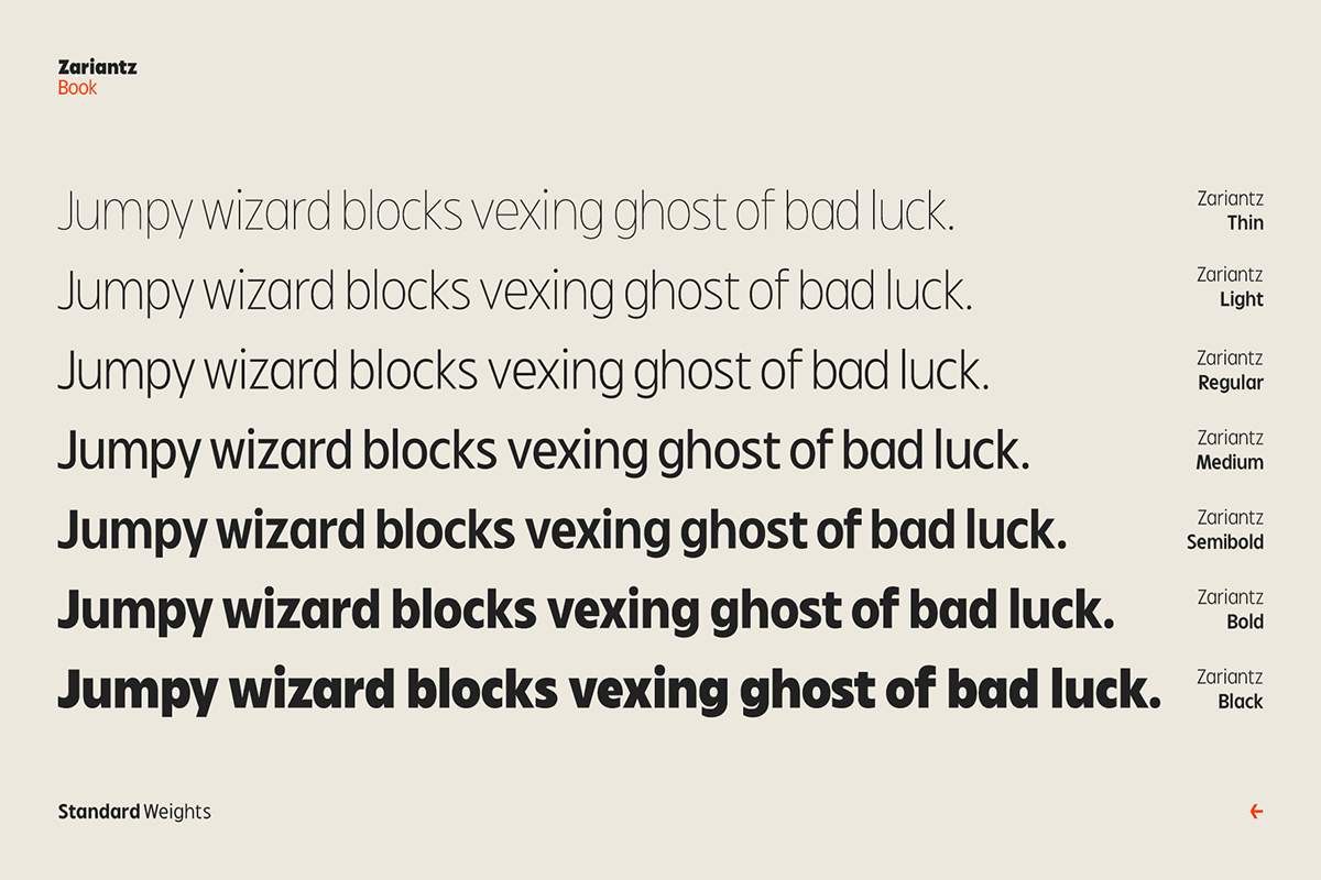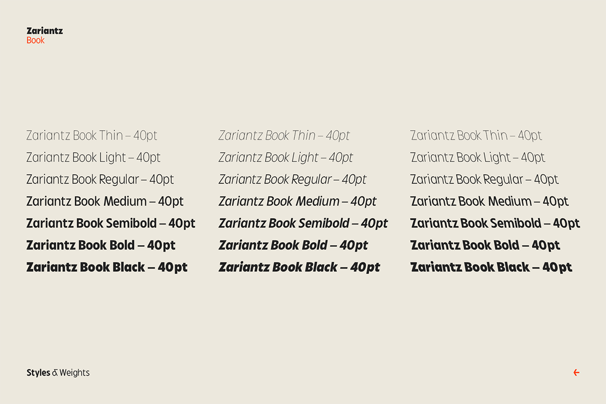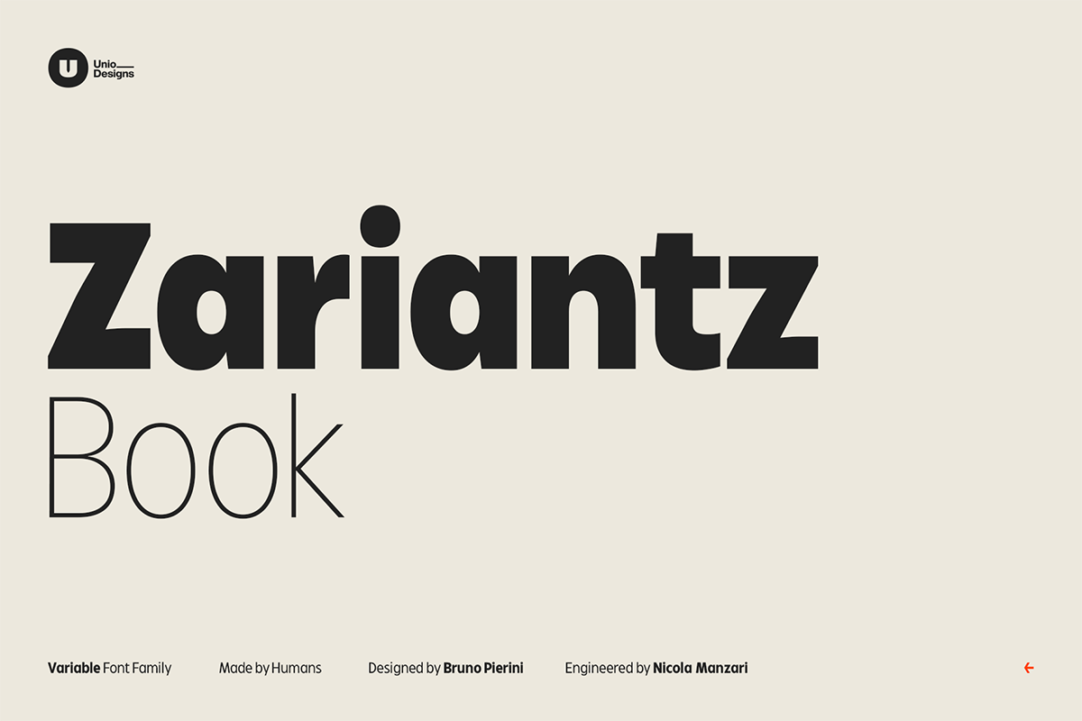 Zariantz Book – Sans Serif is a versatile sans serif variable typeface that offers clarity, precision, and expressive detail. Built around a balanced “book” weight, it delivers a clean and contemporary voice suited for both editorial and digital environments.